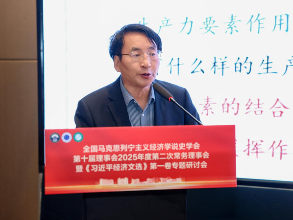 学会常务理事、中国人民大学马克思主义学院常庆欣教授发表主旨演讲,题为《习近平经济思想的体系化发展》。他指出体系化研究应追求贯穿思维—过程—结果的“唯一科学体系”,厘清经济思想与其他子体系的内在同一性。他系统梳理了习近平经济思想的发展脉络脉络与内在逻辑,彰显其对高质量发展的根本指引。