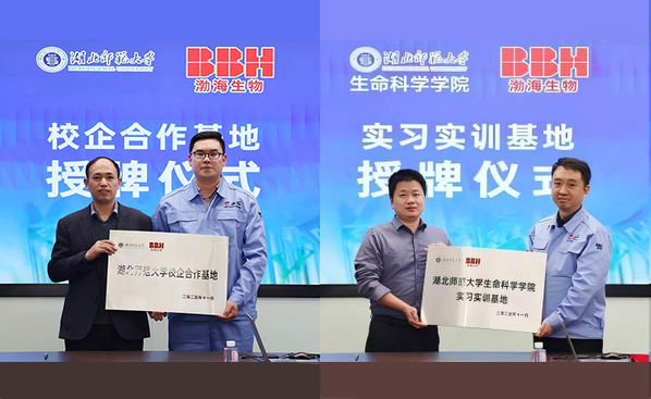李刚华及夏险博士团队指出,生命科学学院在天然产物发掘与综合利用等团队在微生物技术、食药用植物资源综合利用等方面的研究,与渤海生物的主营业务高度契合,并初步提出多项针对性强、可行性高的合作项目设想。座谈会后,双方举行授牌仪式。唐兴军代表学校向湖北渤海生物控股集团授予“校企合作基地”牌匾,李刚华代表生命科学学院授予“实习实训基地”牌匾,标志着双方合作迈入实质性推进阶段。
