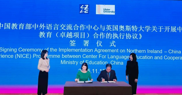 11月15日上午,我校代表团共同见证了奥斯特大学与教育部中外语言交流合作中心签署中文教育(卓越项目)合作协议“Northern Ireland-China Experience(NICE) Programme”,标志着双方在语言文化领域的合作迈向新阶段。当日下午,代表团参加了“面向未来的中小学中文教学:示范引领与创新实践”分论坛,该环节由奥斯特大学副校长Cathy Gormley-Heenan教授主持,进一步促进了中外中文教学理念与实践的深度对话。