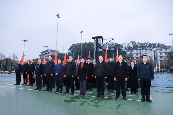 本网讯 3月2日清晨,学校在中心篮球场举行“骏马扬蹄迎新春 青春奋进启新程”2026年春季学期“开学第一课”升国旗仪式。全体在校校领导,党政办、组织部、宣传部、统战部、学工部、教务处、研究生院、国际教育学院、保卫处、团委、后勤管理中心、继续教育学院等相关职能部门负责人,化学化工学院、美术学院领导班子成员,各学院分管学生工作负责人,全体辅导员,各学院学生代表、校青马班学员、校级学生干部代表参加升旗仪式。