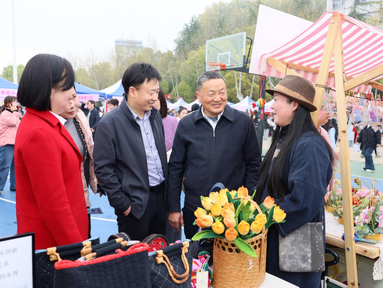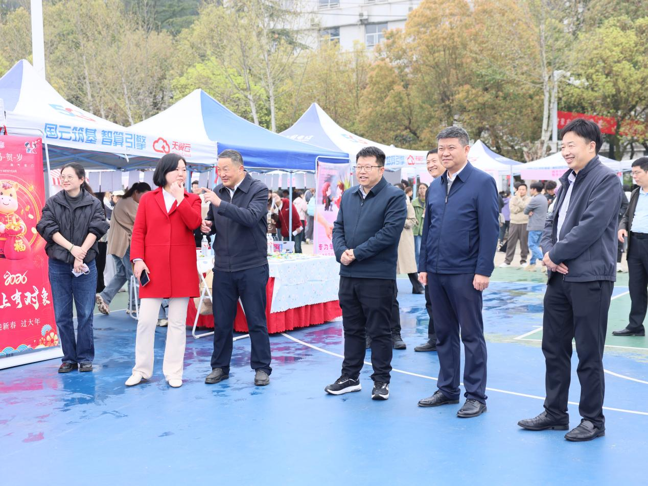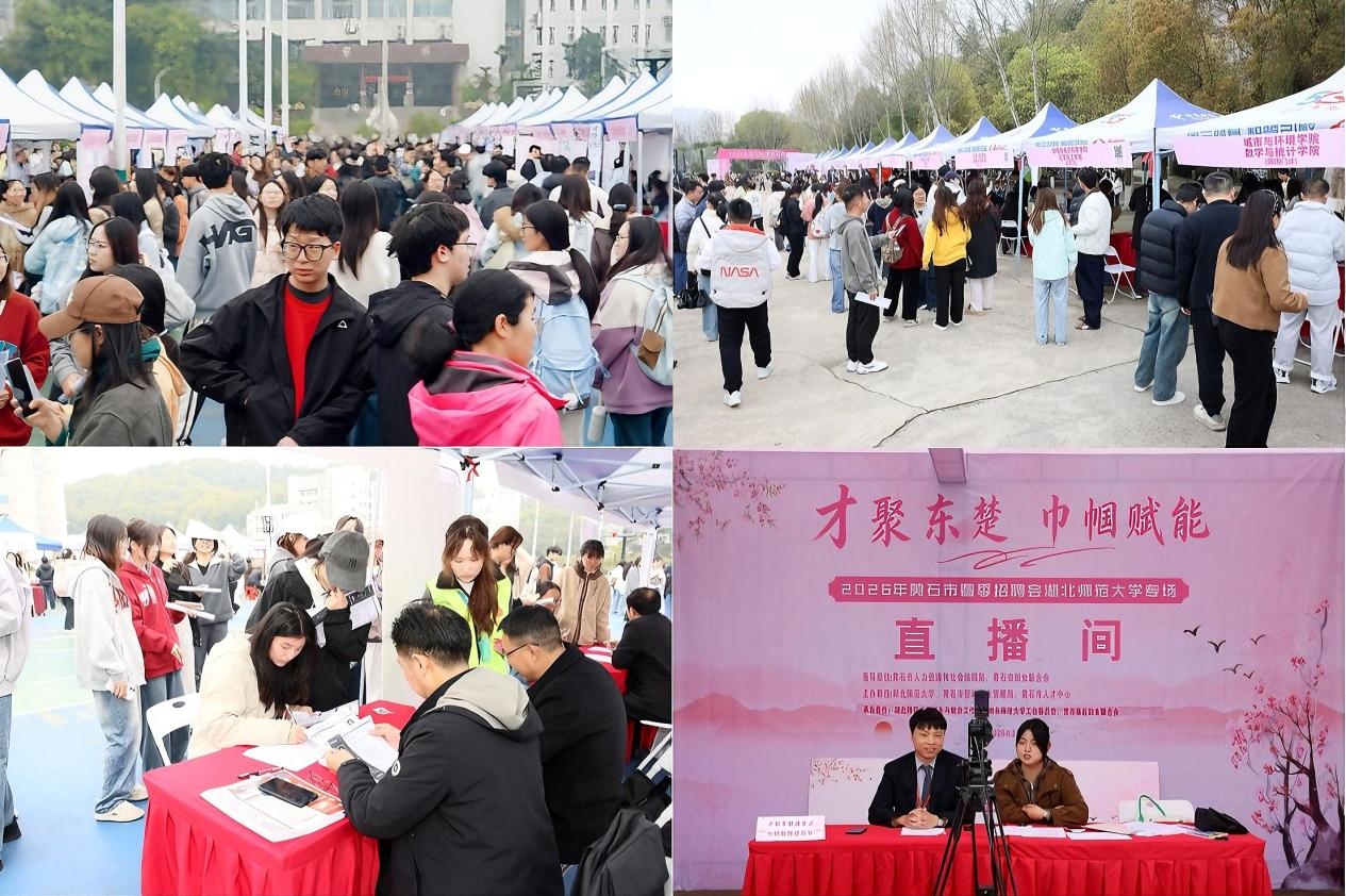 本网讯 为促进高校毕业生特别是女大学生群体高质量就业,吸引更多青年留黄就业创业,3月27日,“才聚东楚·巾帼赋能”黄石市2026年春季招聘会在我校篮球场顺利开展。本次活动由黄石市人力资源和社会保障局、黄石市妇联指导,黄石市劳动就业管理局、黄石市人才中心和我校联合主办。黄石市妇联副主席金丽娟、市人才中心主任彭传意,我校党委书记李宏、校长雷儒金、校党委副书记马列军、余涛等领导亲临现场,与用人单位、毕业生深入交流,详细了解招聘需求与求职进展。