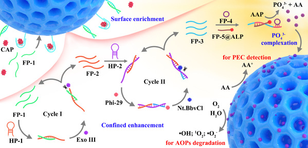 2.Hierarchical nanoplatform for integrated detection and degradation of chloramphenicol: surface enrichment, confined enhancement and phosphate complexation