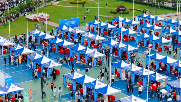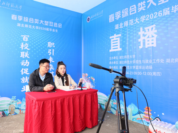 本网讯 为深入贯彻落实党中央、国务院“稳就业”“促就业”决策部署,切实为毕业生搭建求职就业桥梁,4月23日,湖北师范大学2026届毕业生春季综合类大型双选会在学校篮球运动场顺利举行。校党委书记李宏、校长雷儒金、校党委副书记余涛及黄石市台办、黄石港区人社局相关领导亲临现场指导,与用人单位和毕业生深入交流,详细了解招聘需求与求职进展。