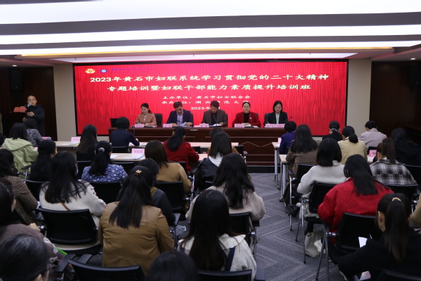 本网讯 4月22-24日,受黄石市妇女联合会委托,由湖北师范大学继续教育学院承办的“学习贯彻党的二十大精神专题暨妇联干部能力素质提升”培训班在我校学术交流中心成功举行。副校长余涛,继续教育学院相关负责人,黄石市妇联党组书记、主席毕正洁以及黄石市妇联领导班子全体成员出席了开班仪式。市妇联执委、各县(市)区妇联主席、各直属妇工委(妇委会)主任、全市各乡镇(街道)妇联主席、村(社区)妇联主席代表、全市优秀女性代表、好家风宣讲团代表和清廉家庭代表和市妇联机关工作人员等约100名妇女干部参加了本次培训。