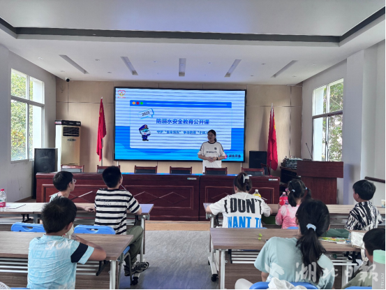 安全教育作为开班仪式的第一课,志愿者代维娜以“防溺水六不准”为核心开展安全教育。通过播放动画视频演示溺水危险场景,用“同伴落水怎么办”情景模拟引导孩子们正确应对。“不能手拉手救人,要找长竹竿!”“发现有人溺水立刻打119!”孩子们争相回答问题。志愿者还现场演示救生圈的使用方法,带领大家齐声朗读防溺水口诀。