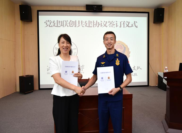 为进一步深化合作,李洁书记与乐进教导员共同签订了党建联动共建协议。李洁在总结讲话中指出,此次活动实现了理论武装与实践淬炼的深度融合,是“马院红”思想引领与“火焰蓝”使命担当的完美结合。她强调,要充分发挥校社协同育人作用,将共建成果转化为推动事业发展的强大动力,为强国建设贡献力量。