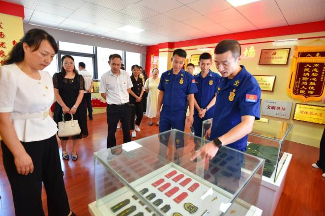 揭牌仪式后,全体师生走进消防站进行参观学习。消防队员详细讲解了各类消防装备的用途,并带领师生参观了消防员宿舍、健身房、荣誉室等场所。整洁的内务、严格的作风、闪耀的勋章和鲜红的旗帜,无不彰显着消防队伍的优良作风,令在场师生深受触动。