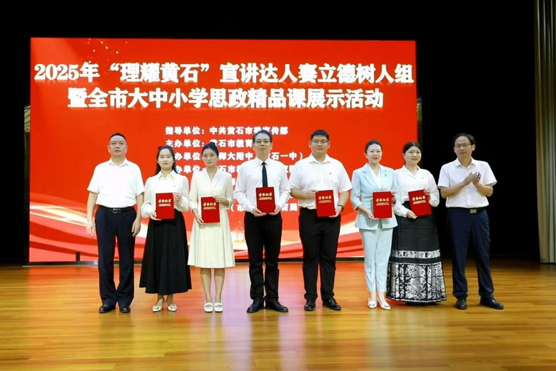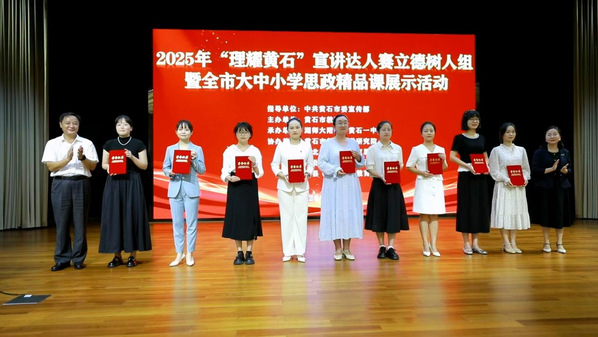 本网讯 9月28日,2025年“理耀黄石”宣讲达人赛立德树人组暨全市大中小学思政精品课展示活动在湖师大附中(黄石一中)圆满落幕。经过激烈角逐,我校选派的两名教师表现优异,校党委宣传部副部长黎哲荣获二等奖,马克思主义学院教师高榕蔚荣获三等奖,充分展现了我校思政工作队伍的扎实功底和育人风采。