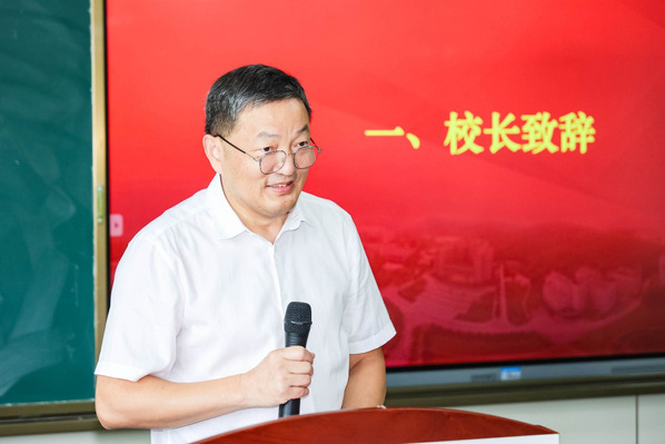 雷儒金代表学校向两位教育部教指委专家致以热烈欢迎和衷心感谢,并简要介绍了学校及外国语学院的基本情况。他表示,当前我校正处于“争博点、强特色、创一流、促转型”的重要阶段,两位国内外语领域的顶级权威专家的莅临指导具有重要意义。他指出,外语学科正面临深刻变革与创新发展,既需要放眼全球,研究如何借助先进的教材与教法,夯实人才培养的根基;也需要立足国情,思考如何培养能够“讲好中国故事”的国际传播专门人才。他勉励师生认真聆听,积极汲取前沿智慧,促进自身发展。