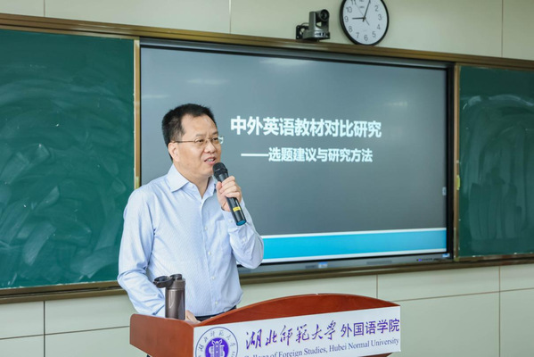 程晓堂教授以“中外英语教材对比研究——选题建议与研究方法”为题,围绕中外英语教材概念界定、研究意义、研究内容与研究方法等展开系统阐述。他结合大量真实教材案例,系统剖析了中外英语教材的发展脉络与多维差异,从选题切入到方法构建,为在座师生提供了具有前瞻性与操作性的研究路径。他指出,开展中外英语教材对比研究,有利于了解世界范围内英语教材发展趋势,更新英语教材编写的理念、技术,拓展英语教材编写思路,编写出更加优秀的英语教材。