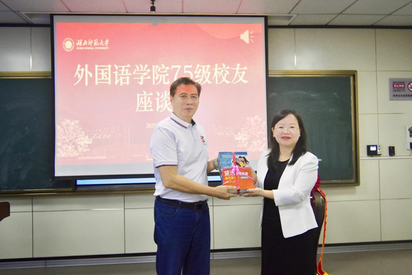 座谈会上,校友们深情回顾了上世纪70年代在国家急需外语人才的时代背景下的求学经历,感念母校提供的学习平台和老师们的悉心培养。他们分享了毕业后在教育领域及其他行业的工作经历,纷纷表示母校的培养为个人的发展奠定了坚实基础,将继续关心和支持母校发展,积极为推动母校的发展贡献余力,并向外国语学院赠送了纪念品。