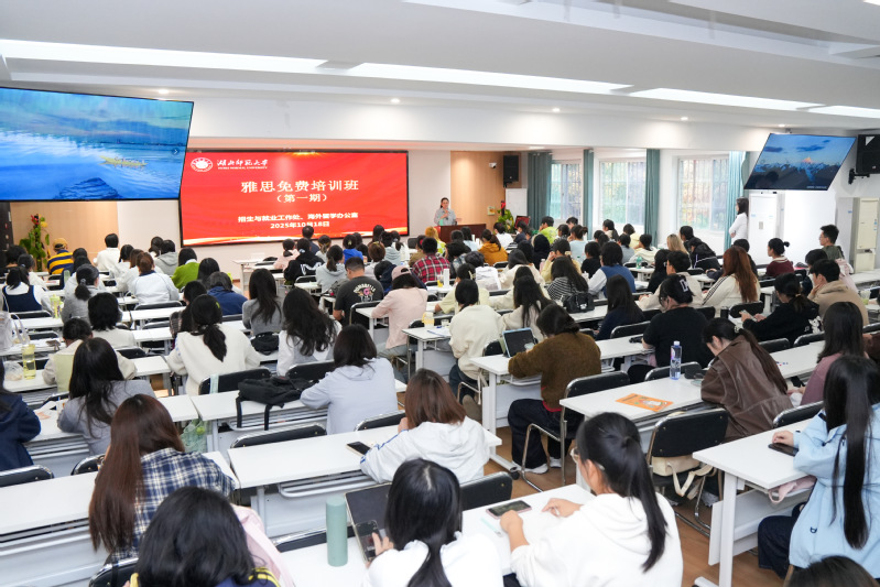 开班仪式上,招就处副处长宋娜深入分析了当前高校毕业生升学、就业面临的严峻形势,介绍了学校为帮助毕业生实现高质量充分就业所采取的一系列举措。她指出,本次培训班是学校落实“人才培养质量提升工程”的重要举措,也是服务学生成长发展、增强就业核心竞争力的具体行动。结合当前高校毕业生就业多元化趋势及湖北省“建成支点、走在前列、谱写新篇”战略对国际化人才的需求,学校精准对接学生需求,整合优质教学资源,邀请拥有多年雅思教学经验的资深教师团队授课。课程将采用“基础夯实+技巧提升+模拟实战”的三维教学模式,涵盖听力、阅读、写作、口语四大模块,同时配套学习答疑、学情跟踪等个性化服务,帮助学生系统掌握雅思考试核心知识点与应试技巧。