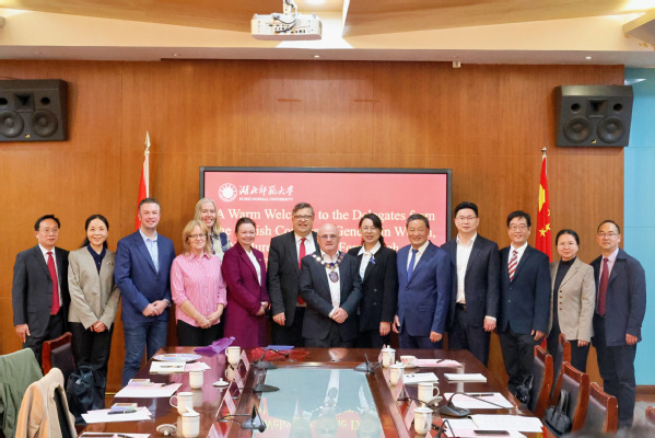 麦多明总领事对我校的热情接待表示感谢。他指出,今年正值英国驻武汉总领馆与中国驻贝尔法斯特总领馆建立十周年,而奥斯特大学与湖北师范大学依托孔子学院铸就的合作之桥,正是中英友好在地方层级深化发展的有力见证与务实成果。总领馆将一如既往地支持双方在教育、文化、青年交流乃至绿色经济等更广阔领域的深度融合。孔凯瑞总代表与麦克杜夫市长也对我校丰硕的国际交流成果给予高度评价,并表达了北爱尔兰及弗马纳欧马区进一步与我校深化各领域务实合作的积极意愿。