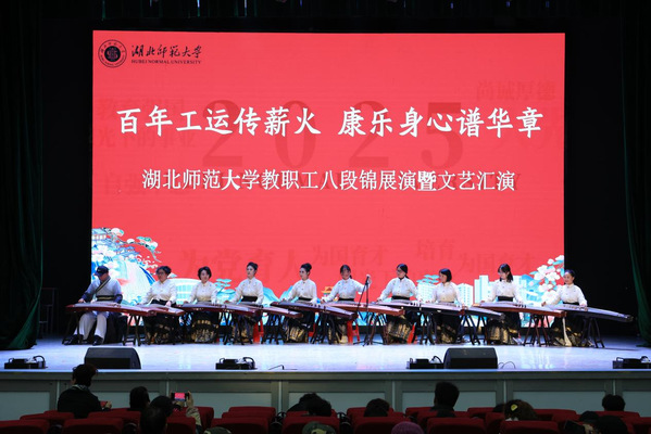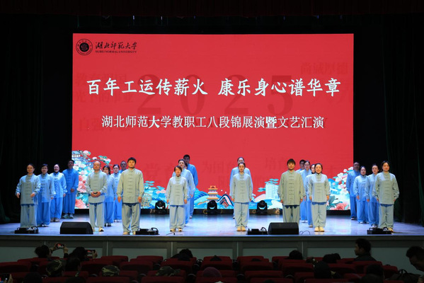 本网讯 为传承百年工运精神,凝聚教职工奋进力量,促进教职工身心健康,展现全校教职工昂扬向上的精神风貌,11月20日下午,校工会在学校大礼堂隆重举办“百年工运传薪火 康乐身心谱华章”教职工八段锦展演暨文艺汇演。校党委书记李宏,校长雷儒金,校党委副书记、工会主席马列军出席活动。各分工会近350名教职工与演出,以八段锦展演和文艺汇演讴歌劳动精神,为全校师生奉上了精彩的演出。