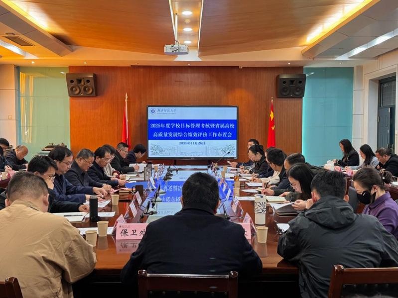 本网讯 11月26日下午,学校在科技大楼505会议室召开2025年度目标管理考核暨高质量发展综合绩效评价工作布置会。校党委副书记、校长雷儒金出席会议并讲话,校内各单位主要负责人参加会议。会议由校党委常委肖六亿主持。
