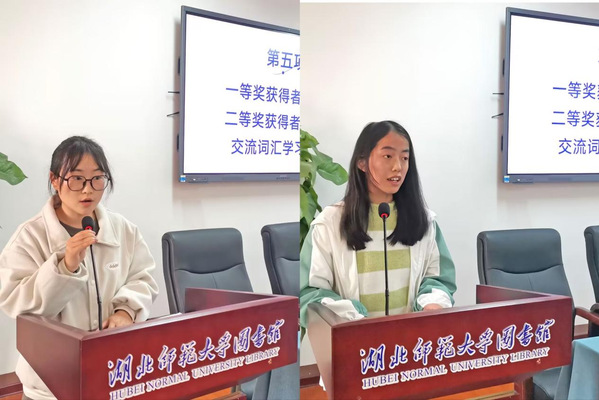 在词汇学习经验交流会上,一等奖获得者张亚婷、二等奖获得者傅心怡分享了词汇学习相关经验。张亚婷谈到,要以“新旧词结合”为核心,筑牢词汇根基,构建科学记忆体系;以“每日打卡机制”为纽带,养成自律习惯,强化学习动力;以良好学习工具和有效方法为双翼,增强学习耐力。傅心怡分享了一套“从输入到输出、从理解到运用”的方法:词根词缀记忆法、音节记忆法、情景记忆法、分类记忆法、运用实践法,认为关键在于找到适合自己的路径,实现高效学习。