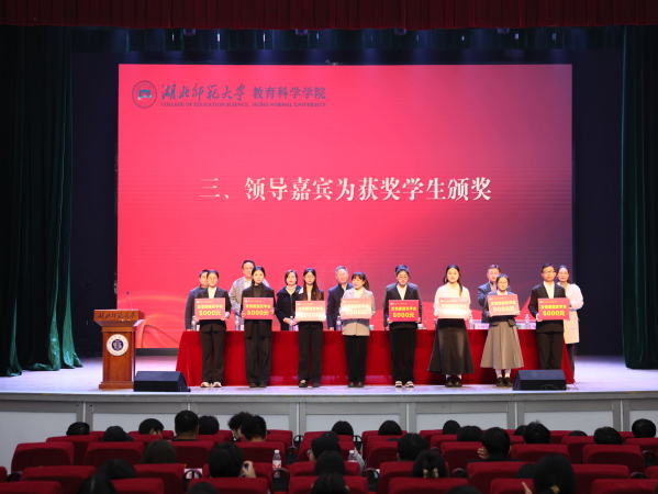 本网讯 为表彰优秀学子,激励学生发愤图强、积极向上,12月11日下午,教育科学学院在湖北师范大学大礼堂举办了2025年“发愤图强奖学金”颁奖仪式。教育科学学院名誉院长涂艳国,学工部、人武部部长杨志丹,校友工作处处长陈敬道,教育科学学院全体领导班子成员、班主任代表、学工办全体成员出席仪式。仪式由教育科学学院党委副书记刘广兵主持。