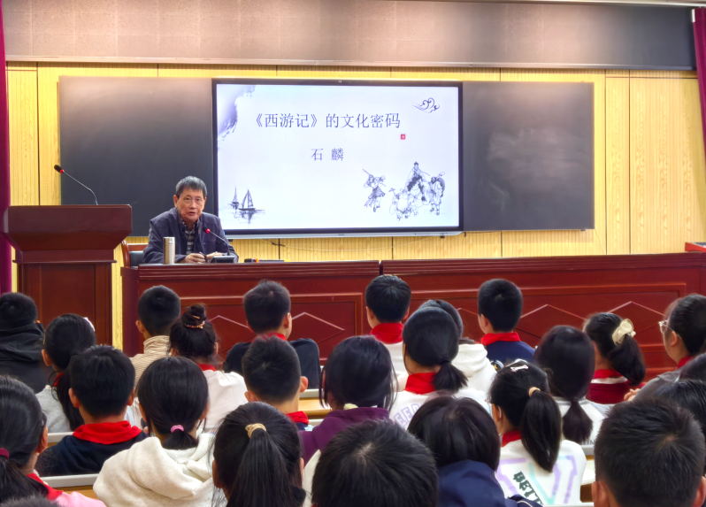 与此同时,为了让更多年轻人了解和热爱中华优秀传统文化,他走出书斋,积极投身于面向社会、面向青少年的文化宣讲活动。从高校讲堂到中小学课堂,从社区文化中心到图书馆公益讲座,石麟教授的身影随处可见。他讲《西游记》,谈修身齐家;他论《三国》,话智慧谋略;他解《论语》《尚书》),谈家国情怀。他的讲解深入浅出,旁征博引,幽默风趣,总能将深奥的古典文化讲得鲜活生动,深深吸引着台下的青年听众。三年来,他累计开展各类公益讲座几十场,受众达数千人次。