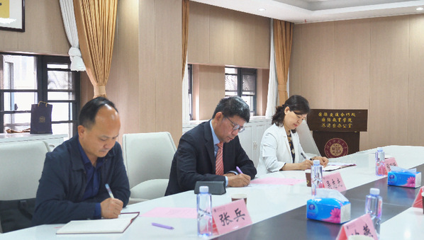 余松林围绕学校台湾工作开展情况作专题汇报,全面介绍了我校在涉台研究交流、台胞服务保障、对台合作项目常态化推进等方面的工作举措与实践成效。沈燕详细汇报了经济管理与法学院发展概况及法学专业建设成果,重点阐述了学院复合型法治人才培养、两岸法治领域研究的办学特色与发展规划。