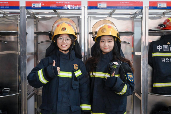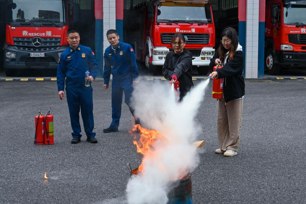 在实操体验环节,同学们在消防员的专业指导下,进行了灭火器操作和消防服穿戴练习。通过动手实践,大家熟练掌握了灭火器的正确使用方法,有效提升了应急处置能力。消防服穿戴体验让大家切身感受到消防员在执行任务时所面临的艰辛与风险,进一步加深了对“人民至上、生命至上”理念的理解。
